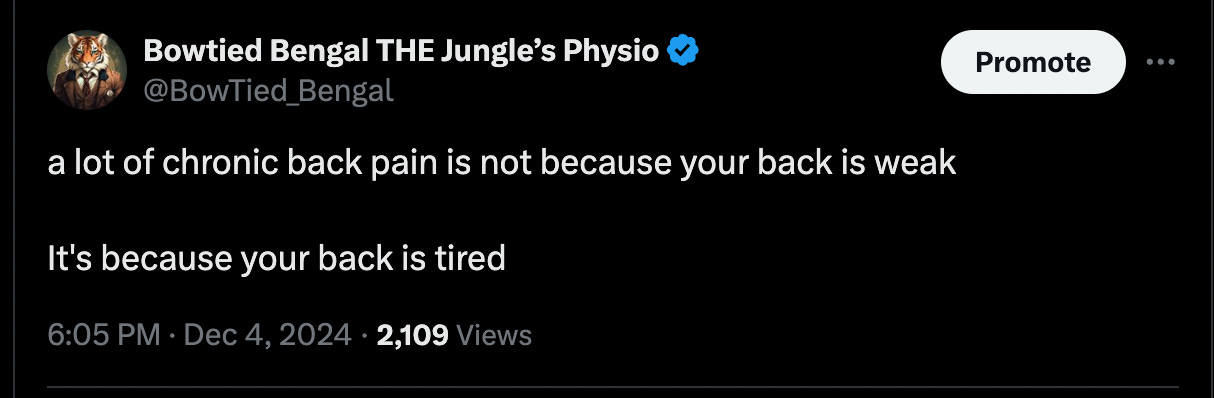 The common thing I see with chronic back pain is NOT that your back is weak, but